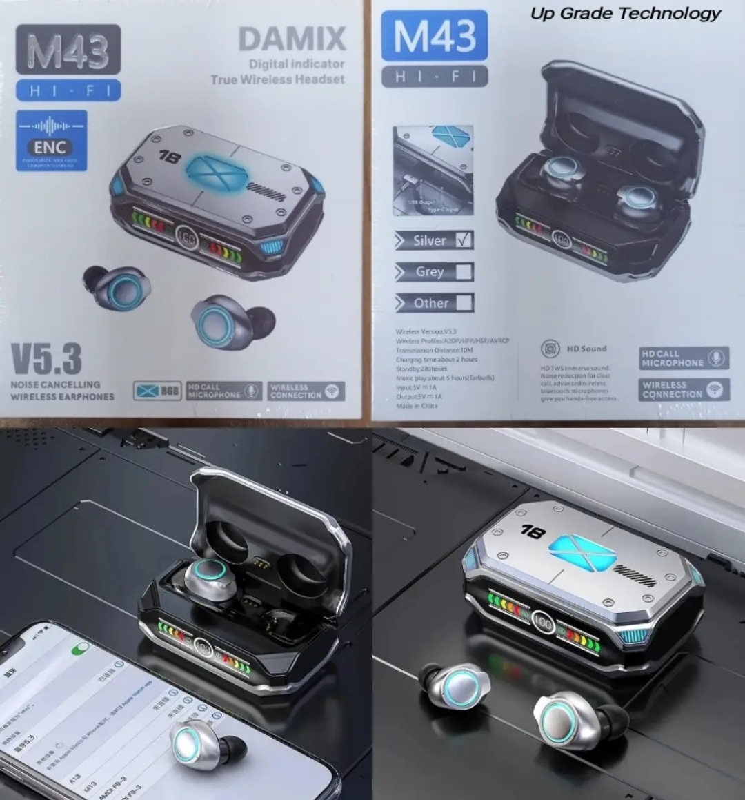1. Experience unparalleled audio quality with the M43 TWS True 5.3 Wireless Ear-Buds, designed for seamless connectivity and superior sound performance. Featuring a stylish RGB charging case, these ear-buds not only deliver impressive battery life but also add a vibrant touch to your tech accessories. With advanced Bluetooth 5.3 technology, enjoy a stable connection and crystal-clear calls, making them perfect for both music lovers and professionals on the go. Lightweight and ergonomic, the M43 ear-buds ensure a comfortable fit for extended wear, elevating your listening experience to new heights.