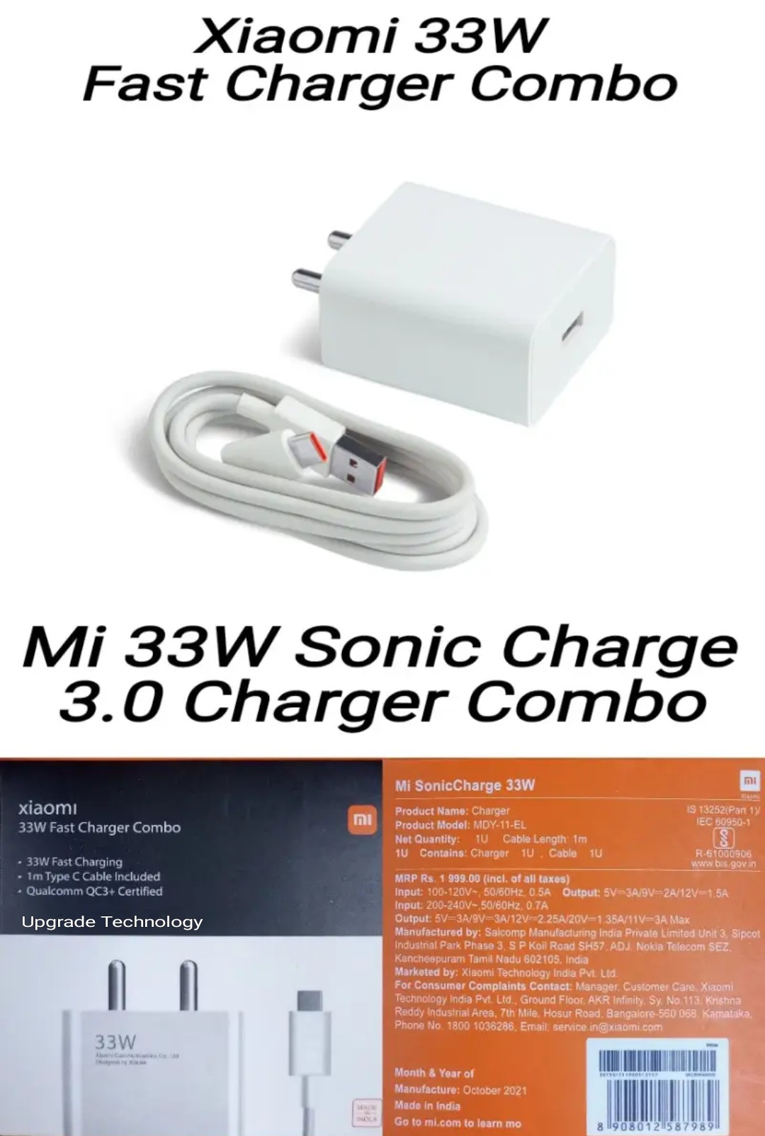 Call: +8809611582853the Latest price of Mi 33W Sonic Charger (Xiaomi-INDIA) MI Turbo Charge 11V- 3A USB Type-C QC 3.0 Adapter is ৳999 in Bangladesh. you can buy or purchase the Mi 33W Sonic Charger (Xiaomi-INDIA) MI Turbo Charge 11V- 3A USB Type-C QC 3.0 Adapter Online in Bangladesh at best the price from our website and get home or office delivery or you can pickup directly from our Office. Here you will also find the honest user Review about the products, Releted Questions & Answer about Mi 33W Sonic Charger (Xiaomi-INDIA) MI Turbo Charge 11V- 3A USB Type-C QC 3.0 Adapter that will makes you more comfortable to take your final decision to buy this Product from our Online Store Doshbish.com.