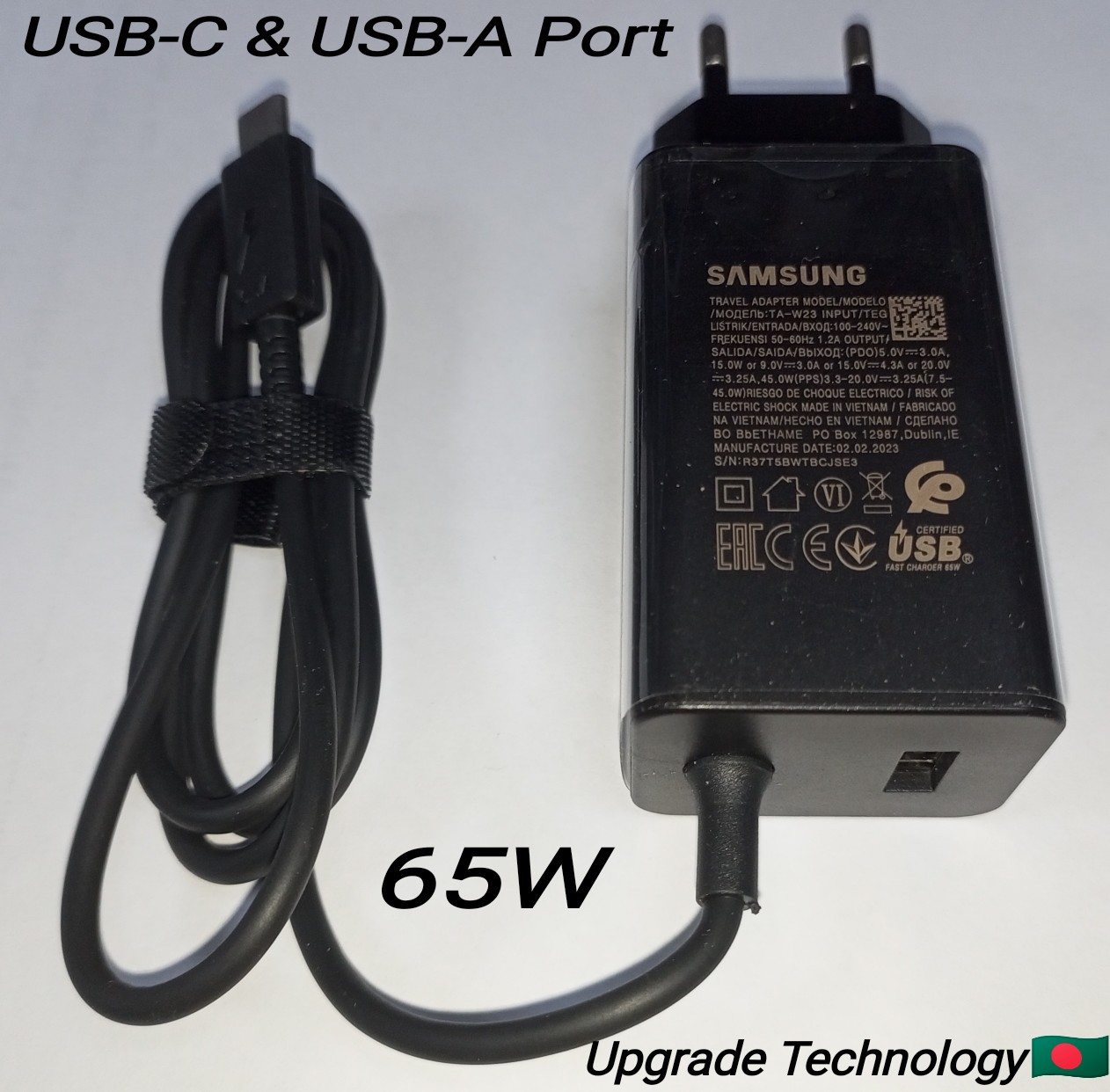Call: +8809611582853the Latest price of Samsung 65W PD Power Adapter Superfast Charging Trio USB A Port with Duel Line Cable is ৳1,250 in Bangladesh. you can buy or purchase the Samsung 65W PD Power Adapter Superfast Charging Trio USB A Port with Duel Line Cable Online in Bangladesh at best the price from our website and get home or office delivery or you can pickup directly from our Office. Here you will also find the honest user Review about the products, Releted Questions & Answer about Samsung 65W PD Power Adapter Superfast Charging Trio USB A Port with Duel Line Cable that will makes you more comfortable to take your final decision to buy this Product from our Online Store Doshbish.com.