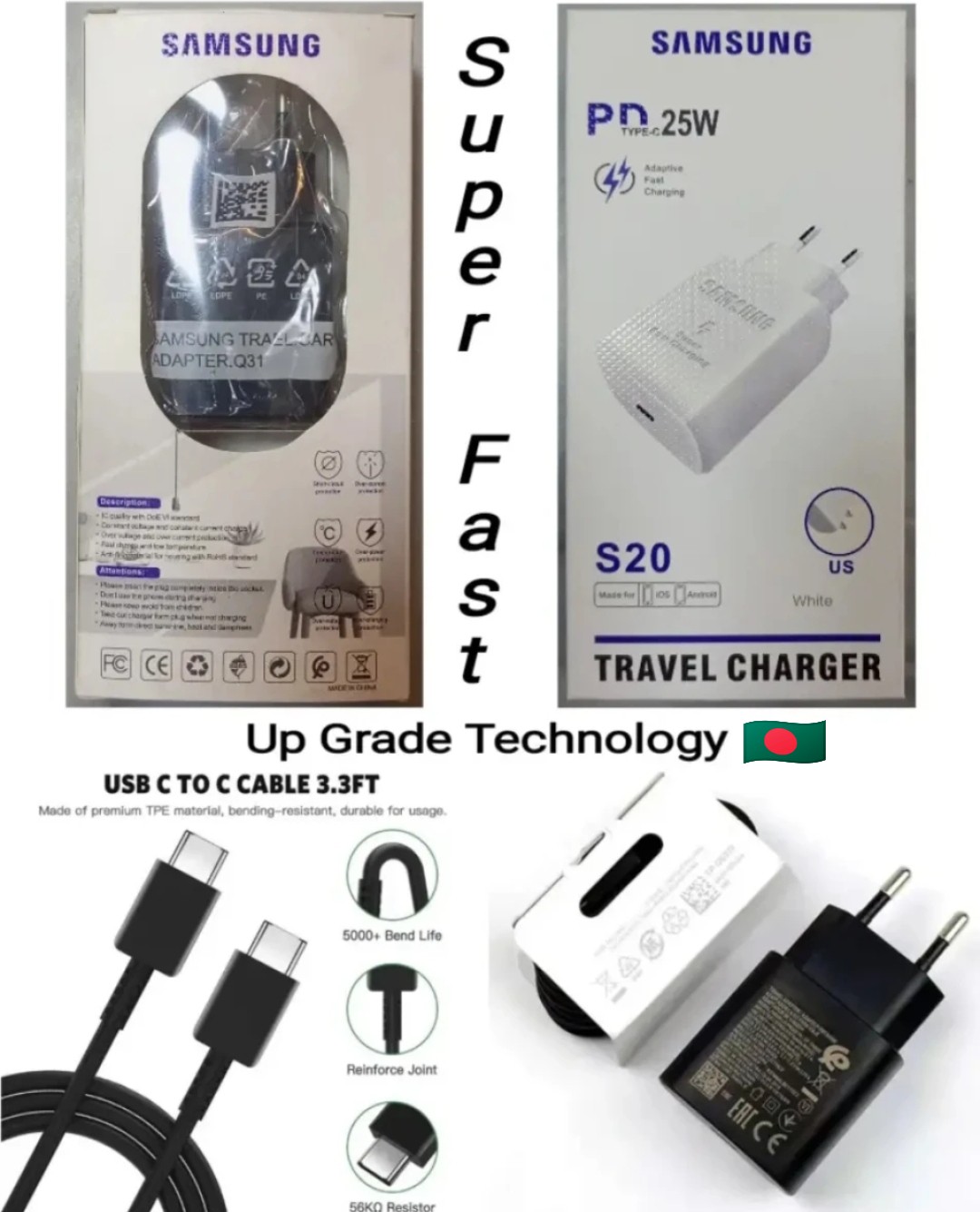 Call: +8809611582853the Latest price of Samsung Galaxy 25W PD 2Pin Fast Charger with Type-C Data & Fast Charging Cable is ৳650 in Bangladesh. you can buy or purchase the Samsung Galaxy 25W PD 2Pin Fast Charger with Type-C Data & Fast Charging Cable Online in Bangladesh at best the price from our website and get home or office delivery or you can pickup directly from our Office. Here you will also find the honest user Review about the products, Releted Questions & Answer about Samsung Galaxy 25W PD 2Pin Fast Charger with Type-C Data & Fast Charging Cable that will makes you more comfortable to take your final decision to buy this Product from our Online Store Doshbish.com.