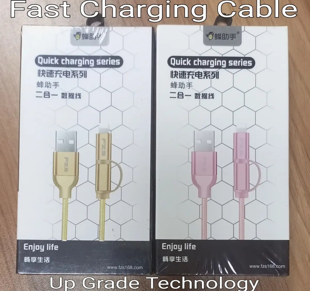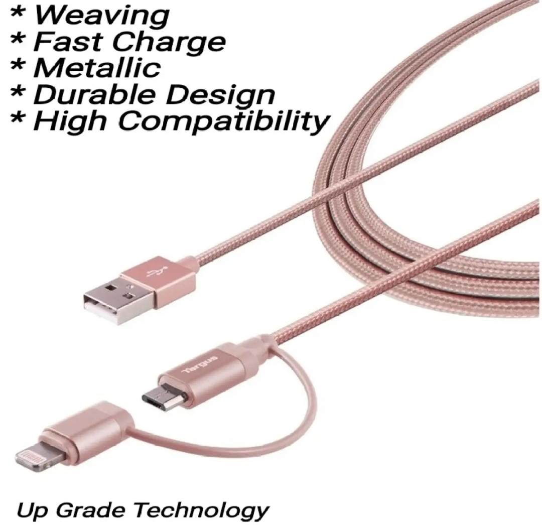1. This 2 in 1 data cable is a versatile and convenient accessory for anyone who owns multiple devices with different charging ports. With a USB to Micro and Lightning connection, this cable allows you to charge and sync a wide range of devices, including Android smartphones, tablets, iPhones, iPads, and more. The fabric braided design not only adds durability to the cable but also prevents tangling, making it easy to store and carry around without worrying about knots and kinks.