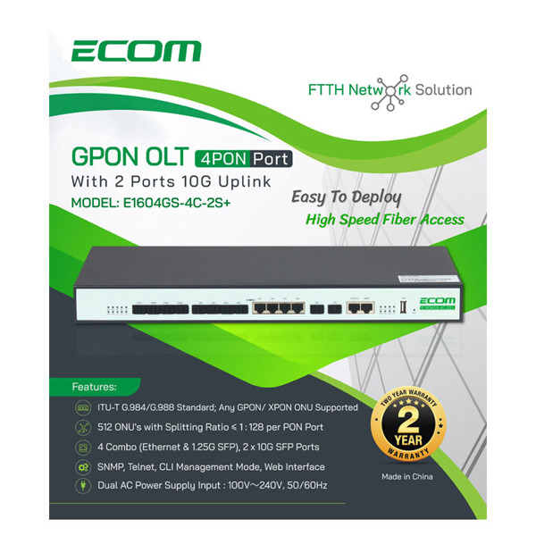 the Latest price of ECOM 4 Port Gpon Olt With 2 Port Uplink 10G Port is ৳85,000 in Bangladesh. you can buy or purchase the ECOM 4 Port Gpon Olt With 2 Port Uplink 10G Port Online in Bangladesh at best the price from our website and get home or office delivery or you can pickup directly from our Office. Here you will also find the honest user Review about the products, Releted Questions & Answer about ECOM 4 Port Gpon Olt With 2 Port Uplink 10G Port that will makes you more comfortable to take your final decision to buy this Product from our Online Store Doshbish.com.
