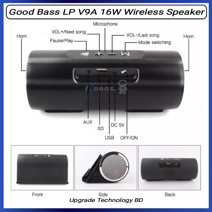 Call: +8809611582853the Latest price of LP V9A Wireless Bluetooth Portable Speaker 16Watt Super Bass USB Port TF Card Slot Bluetooth Connection Mic with Mobile Phone Stand is ৳1,299 in Bangladesh. you can buy or purchase the LP V9A Wireless Bluetooth Portable Speaker 16Watt Super Bass USB Port TF Card Slot Bluetooth Connection Mic with Mobile Phone Stand Online in Bangladesh at best the price from our website and get home or office delivery or you can pickup directly from our Office. Here you will also find the honest user Review about the products, Releted Questions & Answer about LP V9A Wireless Bluetooth Portable Speaker 16Watt Super Bass USB Port TF Card Slot Bluetooth Connection Mic with Mobile Phone Stand that will makes you more comfortable to take your final decision to buy this Product from our Online Store Doshbish.com.