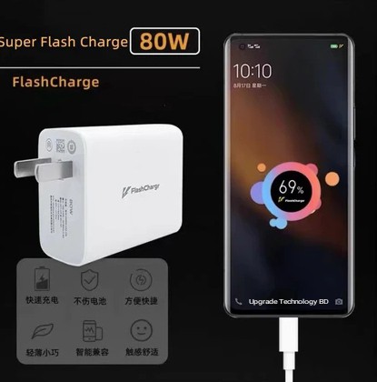 The Original Vivo iQOO 80W GAN Flash Charger USB Charger is the universal application tool