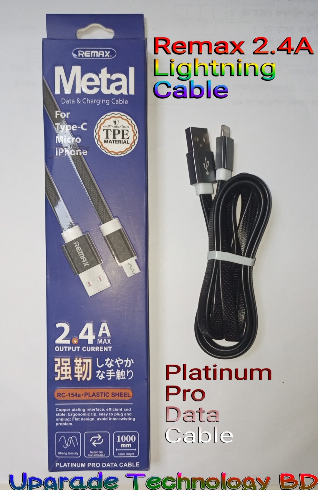 Product Details of Remax Platinum Pro Metal iPhone Lightning USB Data & Charging Cable 2.4A RC-154a - For Iphone 5 / 6 / 7 / 8 / X / XR / XS - Cable Protector.