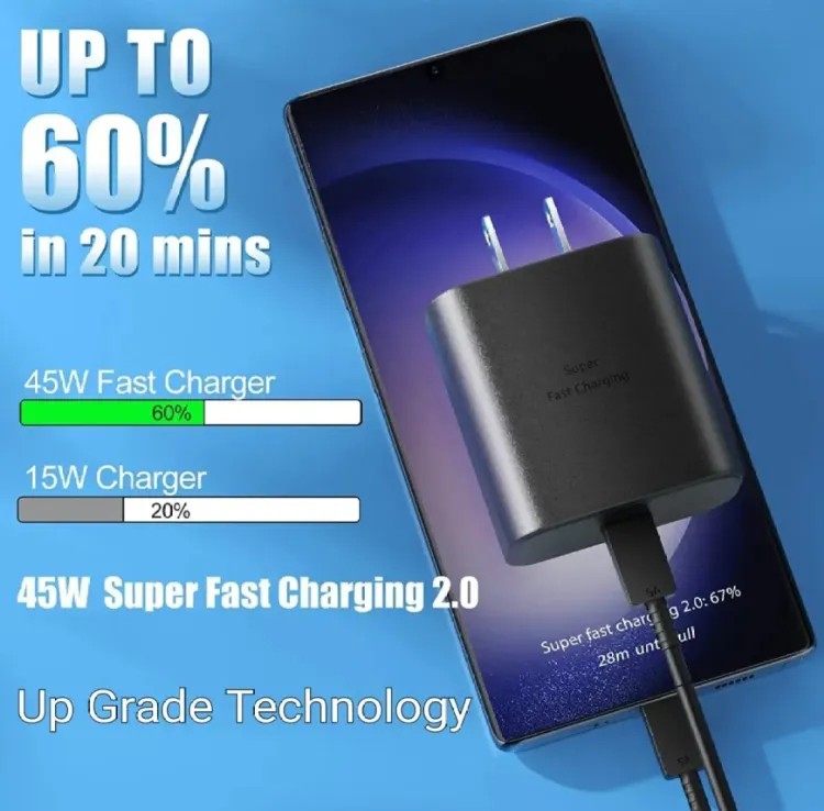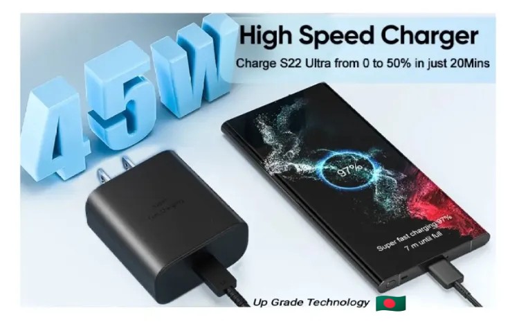 Call: +8809611582853the Latest price of Samsung 45W 2Pin PD Superfast Charger with Type-C to Type-C Data & Fast Charging Cable is ৳999 in Bangladesh. you can buy or purchase the Samsung 45W 2Pin PD Superfast Charger with Type-C to Type-C Data & Fast Charging Cable Online in Bangladesh at best the price from our website and get home or office delivery or you can pickup directly from our Office. Here you will also find the honest user Review about the products, Releted Questions & Answer about Samsung 45W 2Pin PD Superfast Charger with Type-C to Type-C Data & Fast Charging Cable that will makes you more comfortable to take your final decision to buy this Product from our Online Store Doshbish.com.