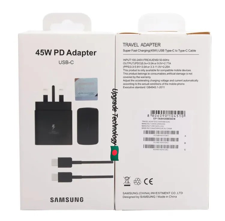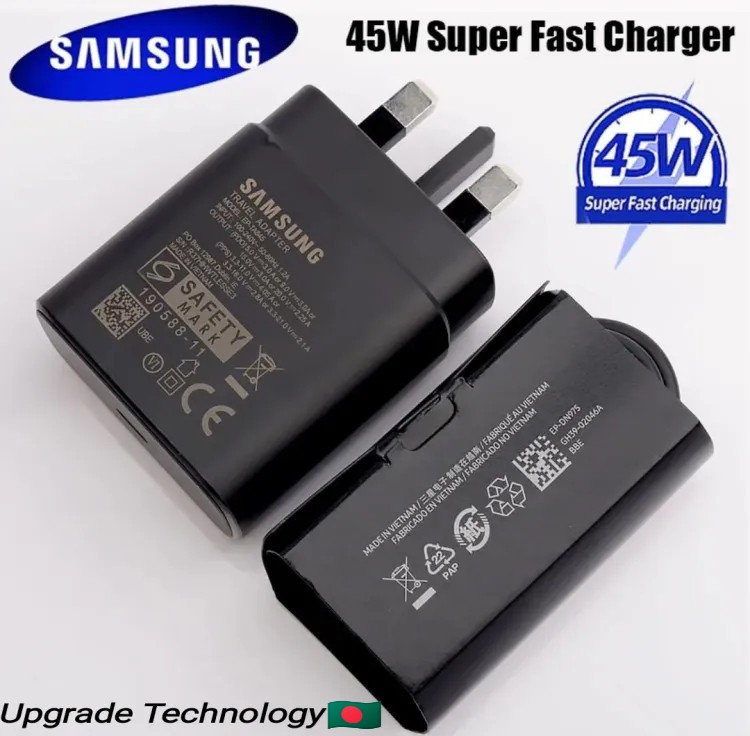 Call: +8809611582853the Latest price of Samsung 45W 3Pin PD Superfast Charger with Type-C to Type-C Data & Fast Charging Cable is ৳1,199 in Bangladesh. you can buy or purchase the Samsung 45W 3Pin PD Superfast Charger with Type-C to Type-C Data & Fast Charging Cable Online in Bangladesh at best the price from our website and get home or office delivery or you can pickup directly from our Office. Here you will also find the honest user Review about the products, Releted Questions & Answer about Samsung 45W 3Pin PD Superfast Charger with Type-C to Type-C Data & Fast Charging Cable that will makes you more comfortable to take your final decision to buy this Product from our Online Store Doshbish.com.