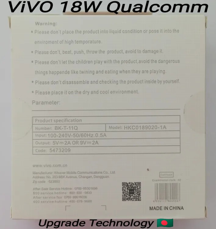 Call: +8809611582853the Latest price of Vivo 18W Qualcomm Quick Charge 3.0 Charger Adapter With Type B Cable is ৳550 in Bangladesh. you can buy or purchase the Vivo 18W Qualcomm Quick Charge 3.0 Charger Adapter With Type B Cable Online in Bangladesh at best the price from our website and get home or office delivery or you can pickup directly from our Office. Here you will also find the honest user Review about the products, Releted Questions & Answer about Vivo 18W Qualcomm Quick Charge 3.0 Charger Adapter With Type B Cable that will makes you more comfortable to take your final decision to buy this Product from our Online Store Doshbish.com.