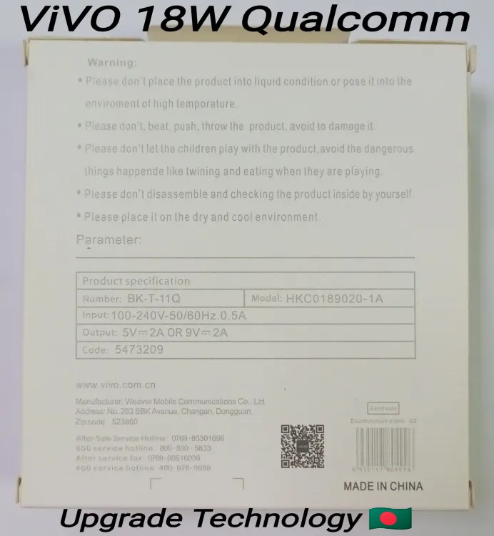 Call: +8809611582853the Latest price of Vivo 18W Qualcomm Quick Charge 3.0 Charger Adapter With Type B Cable is ৳550 in Bangladesh. you can buy or purchase the Vivo 18W Qualcomm Quick Charge 3.0 Charger Adapter With Type B Cable Online in Bangladesh at best the price from our website and get home or office delivery or you can pickup directly from our Office. Here you will also find the honest user Review about the products, Releted Questions & Answer about Vivo 18W Qualcomm Quick Charge 3.0 Charger Adapter With Type B Cable that will makes you more comfortable to take your final decision to buy this Product from our Online Store Doshbish.com.