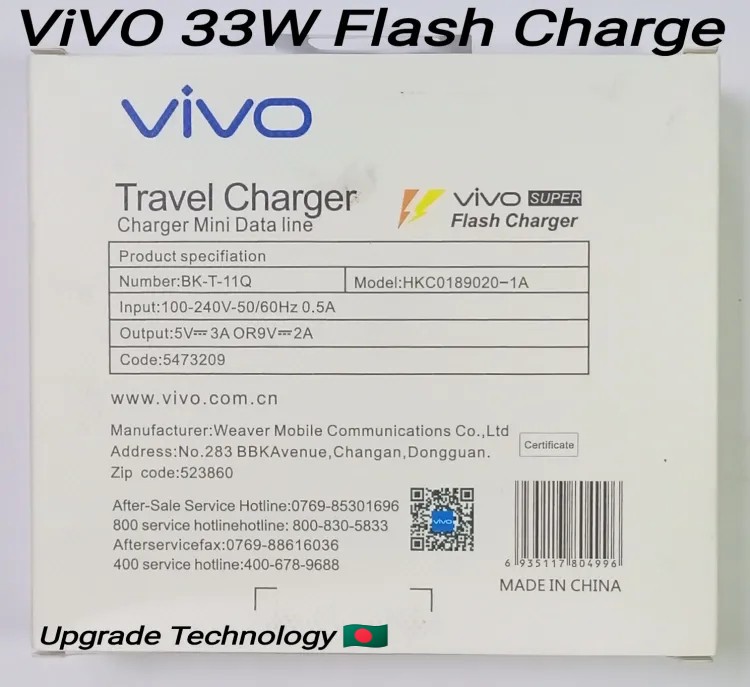 Call: +8809611582853the Latest price of VIVO 33W Flash Charge 2.0 Fast Charger Type C Data Cable 11V/3A Adapter is ৳999 in Bangladesh. you can buy or purchase the VIVO 33W Flash Charge 2.0 Fast Charger Type C Data Cable 11V/3A Adapter Online in Bangladesh at best the price from our website and get home or office delivery or you can pickup directly from our Office. Here you will also find the honest user Review about the products, Releted Questions & Answer about VIVO 33W Flash Charge 2.0 Fast Charger Type C Data Cable 11V/3A Adapter that will makes you more comfortable to take your final decision to buy this Product from our Online Store Doshbish.com.